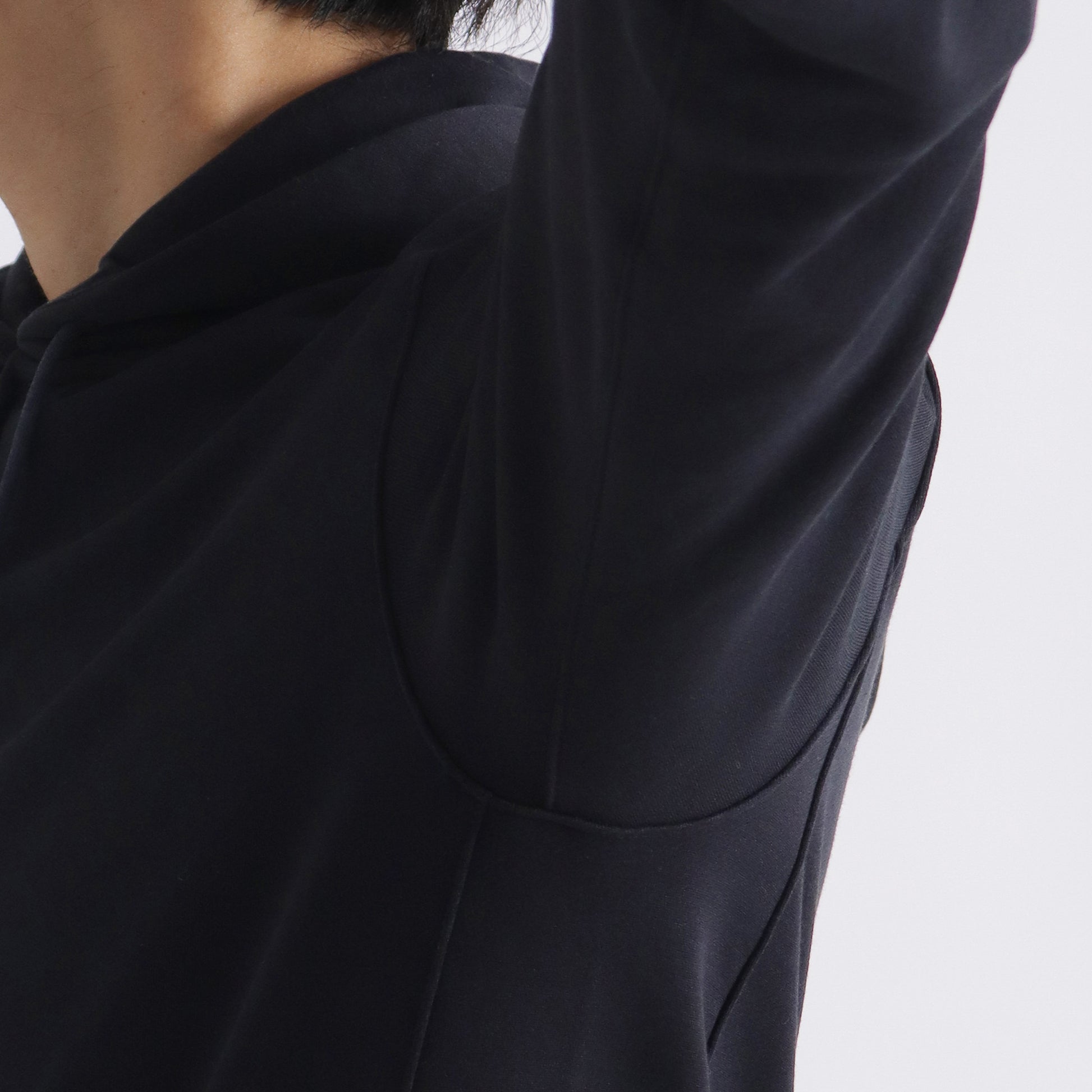 ジャケットのパターンをベースに袖ぐりの形状や肩線、さらには背中に振込みを入れるなどテーラードジャケットの要素を取り入れています。
