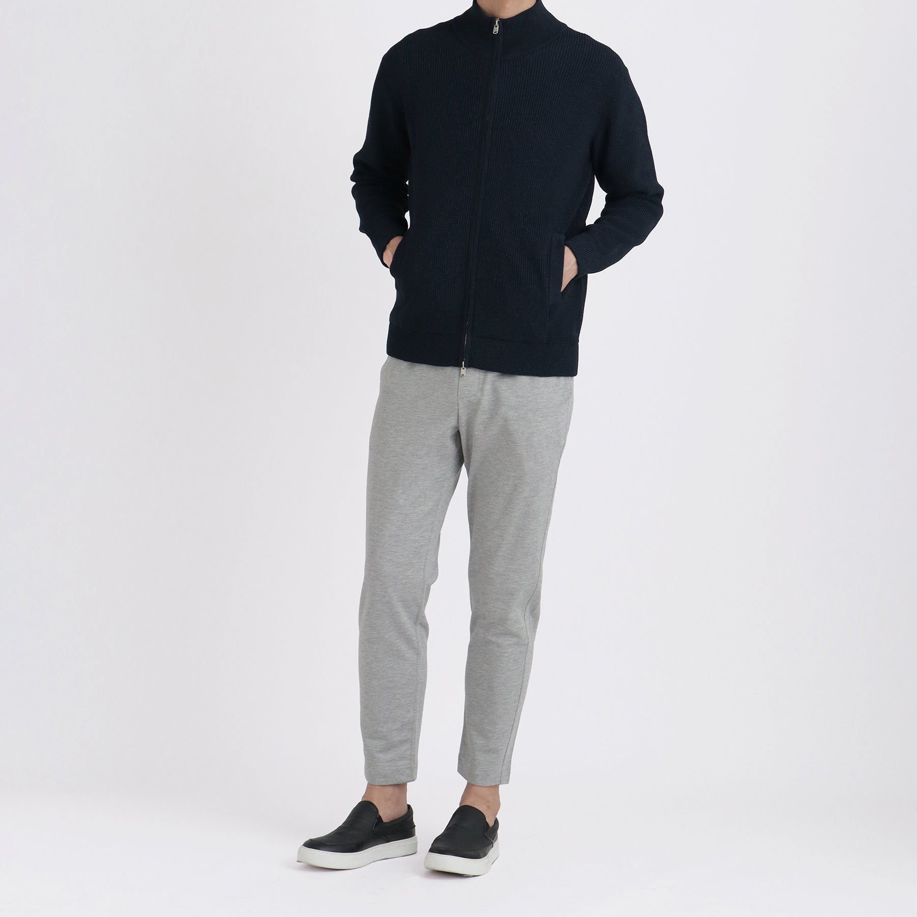 洗練されたデザインで幅広いスタイルにフィットするジップアップニットの鉄板アイテムであるドライバーズニット。高密度に編むがゆえに重くなりがちなドライバーズニットをテックツイード糸を使用したことにより重厚な見た目とは裏腹に非常に軽い仕上がりになっています。Tシャツなどの羽織りだけでなくコートなどのインナーにも使え、さらにはシワになりにくく、家庭で洗濯できる優れもの。シンプルながらも存在感のあるルックス、尚且つ機能性を持ったドライバーズニットはデイリーウェアとしておすすめです。