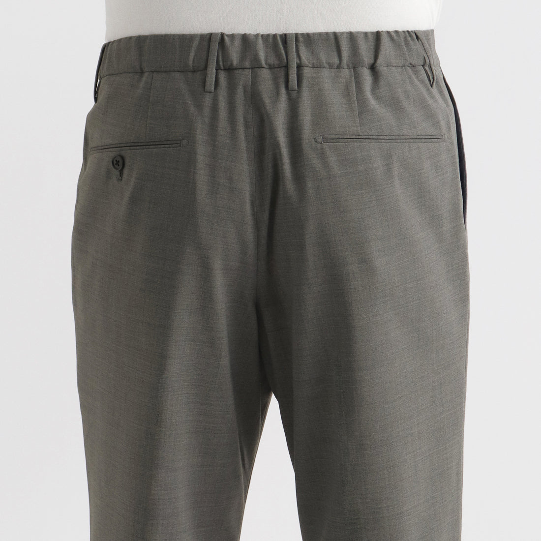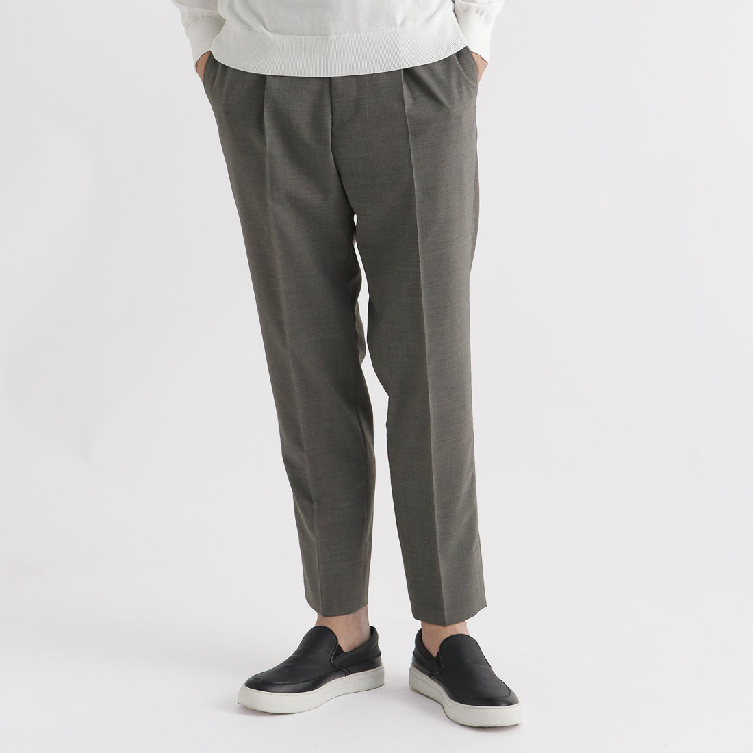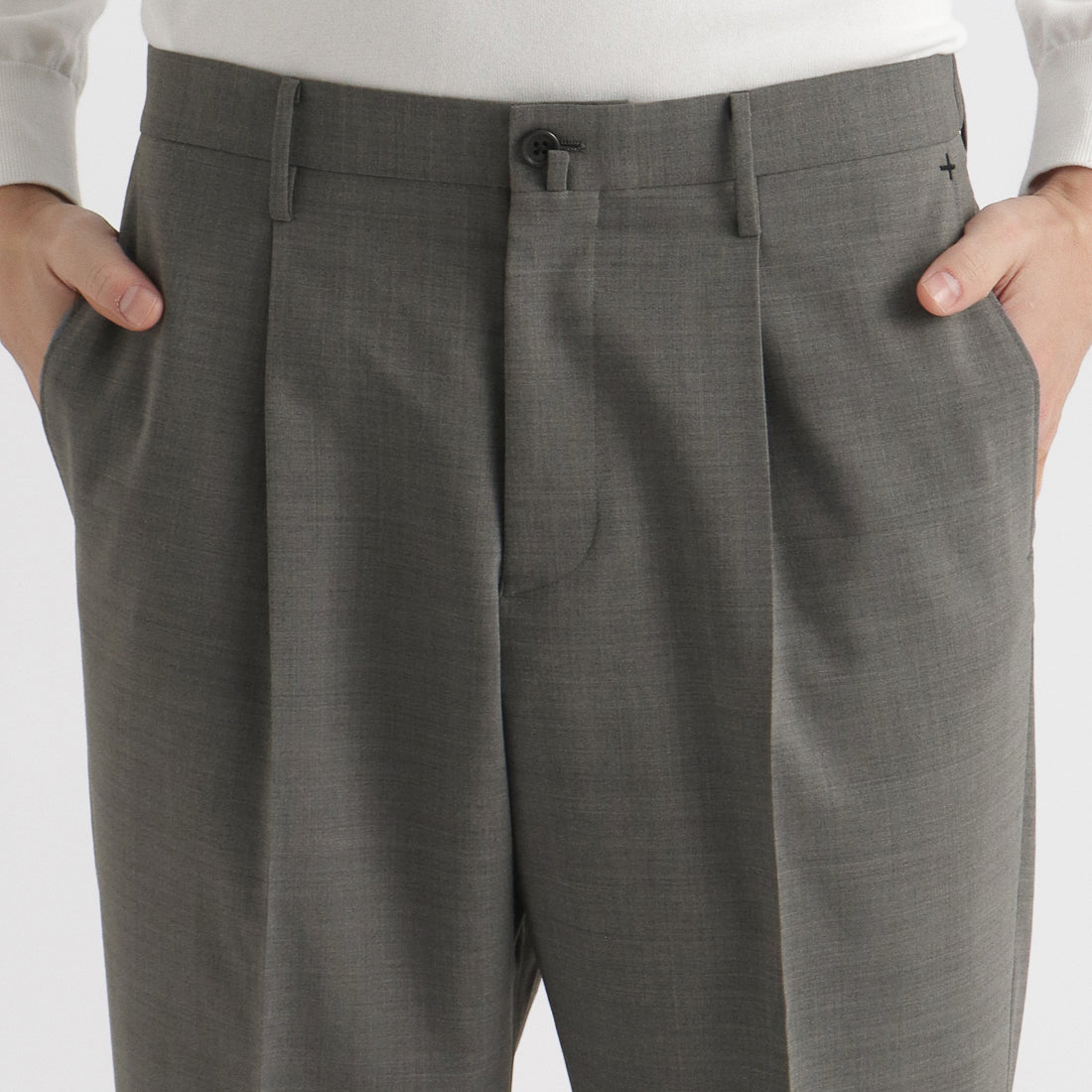 ウールベースの高機能素材「TECHWOOL®」シリーズの細番手ポリエステルウールトロピカルを使用したワンプリーツトラウザーです。