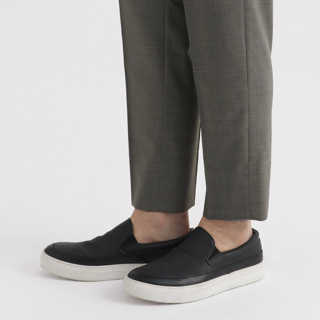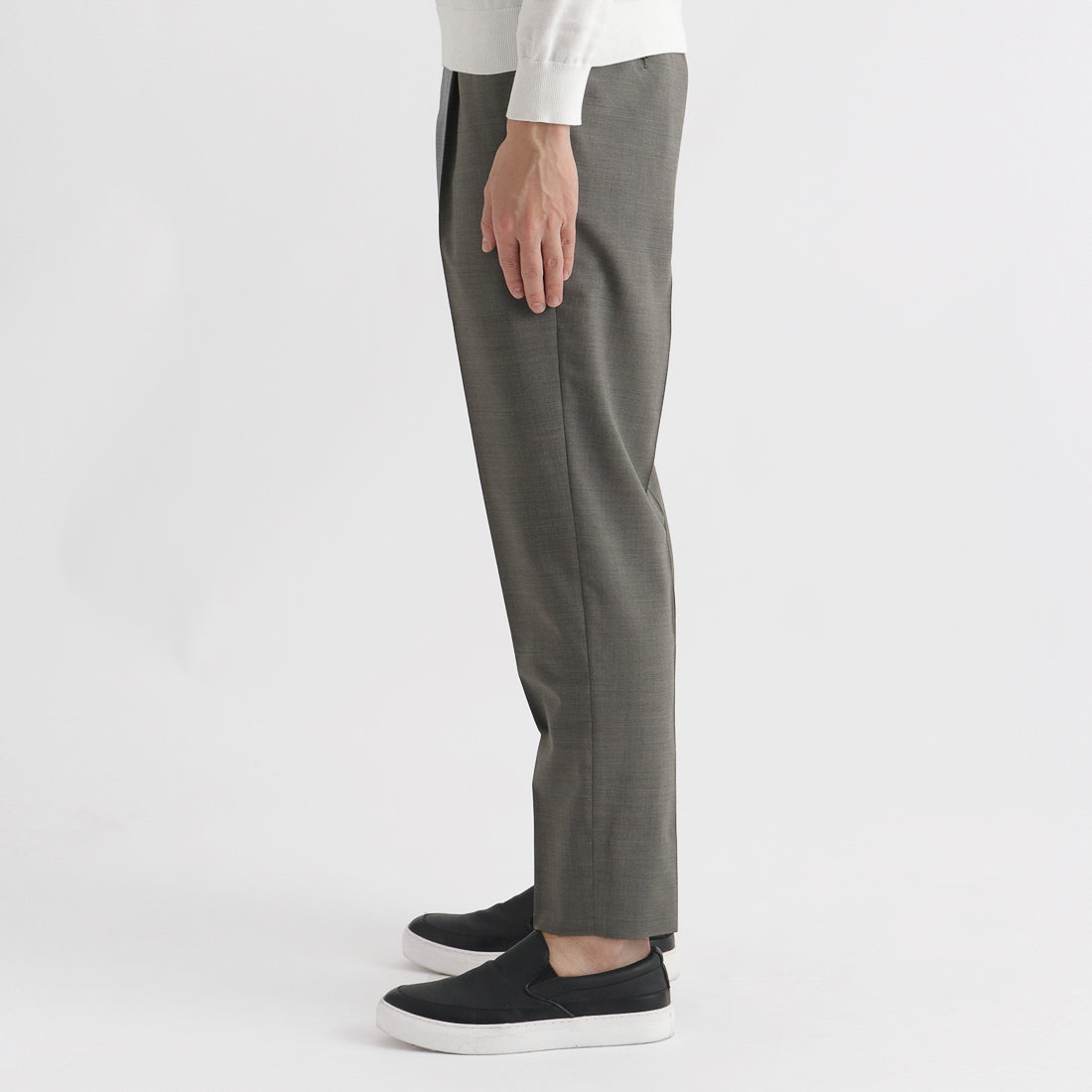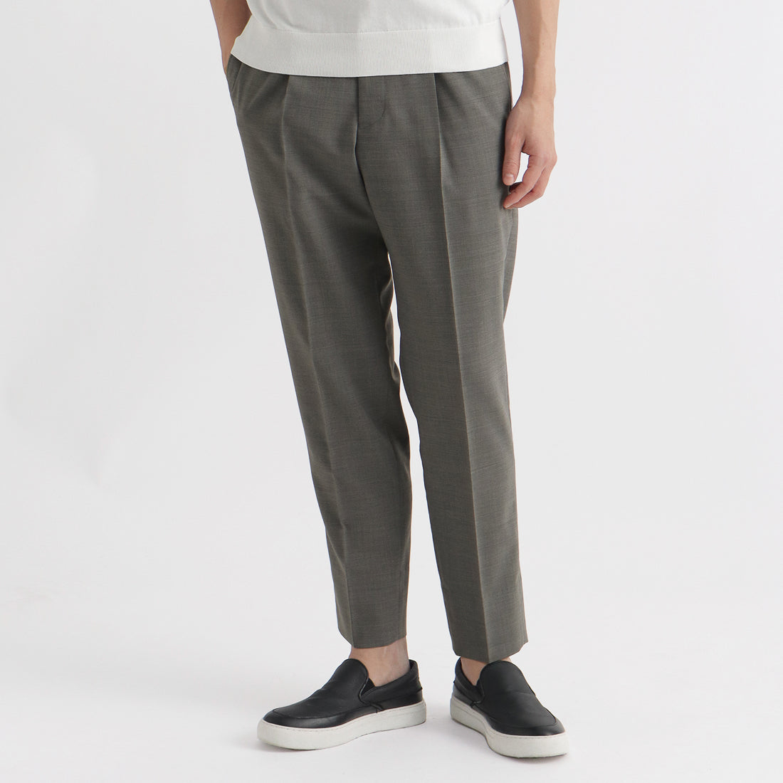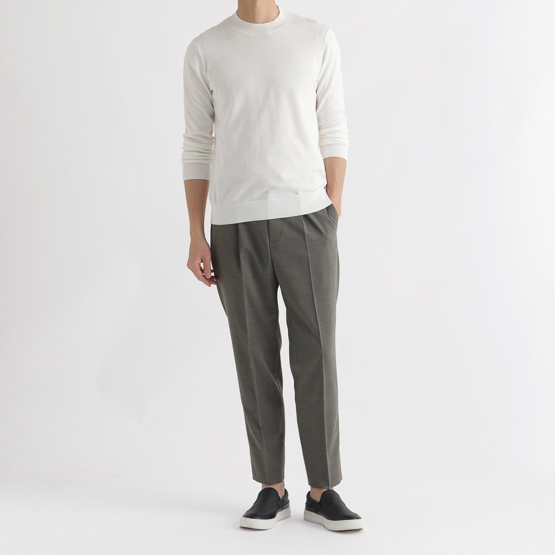 ウールベースの高機能素材「TECHWOOL®」シリーズの細番手ポリエステルウールトロピカルを使用したワンプリーツトラウザーです。