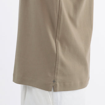 リニューアルしたレギュラーTシャツのシルエットやサイズ感をベースにワンボタンポロを作成。襟のロール感を出しつつ、前開きを狭くすることでカジュアルなアイテムながらも上質でエレガントな表情に仕上がっています。今回の新色の他にホワイト、ネイビー、ブラックも展開中です。