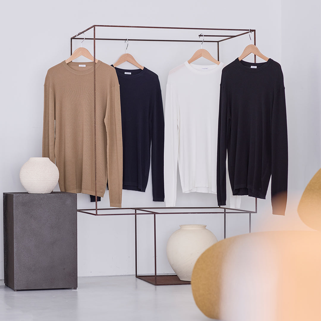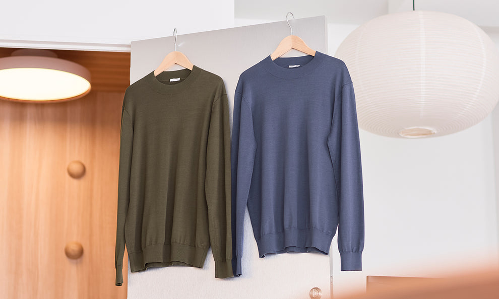 モックネックはホワイト、ネイビー、ブラック、オーク、フォーン、の定番カラーに加え今回2色が加わったので、全部で7色展開となりました。ぜひお気に入りのカラーを見つけてください。全てのカラーをみる