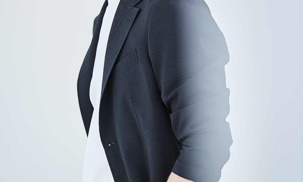 ウールの持つ高級感、吸放湿性とSOLOTEX®の持つしなやかさ、ストレッチ性を併せ持つ新感覚のシアサッカーセットアップ
