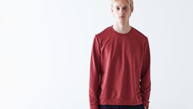 スビンプラチナムの薄手のスウェット素材スムーステリーに限定色「クランベリー」が登場です。深みのある上品なカラーなので、メンズの定番ブラックやネイビーの濃色カラーとの相性も良くお薦めのカラーです。