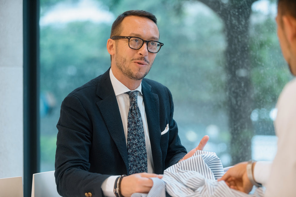 私はイタリアの大学で中国文化を勉強した後、イタリアの大手生地メーカー「MARZOTTO(マルゾット)」に就職しました。配属先が上海オフィスでしたので、上海にはかれこれ15年以上住んでいます。そこで培ったテキスタイルの知識や経験を生かし、新たな領域にチャレンジしたいと思い、今年の1月にアルビニへ入社しました。同社には、長い歴史を持つ生地ブランド「ALBINI 1876」や「THOMAS MASON 1796」がある一方で、ITALIAN TEXTILE EXPLORERSを標榜する「ALBIATE 1830」というラインでは新しいテキスタイルの開発に積極的に取り組んでいる。そんな伝統と革新を大切にする姿勢に、自分のキャリアをうまくリンクさせて貢献していきたいと思っています。