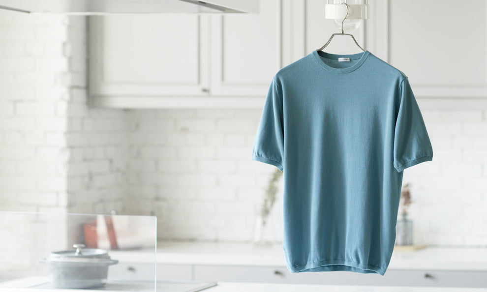 春夏の人気定番スビンプラチナムニットコレクションからニットTシャツとニットポロシャツに限定カラー「スモークブルー」が登場です。限定カラーではシーズンの雰囲気を取り入れ、クロスクローゼットらしい色味を毎シーズン提案しています。今回のスモークブルーは少しグレーがかったブルーで肌馴染みも良く大人っぽく着れるのがポイントです。メンズの定番のネイビーやグレー、ブラックとの相性も良いのでボトムとの合わせも選ばず着て頂けます。
