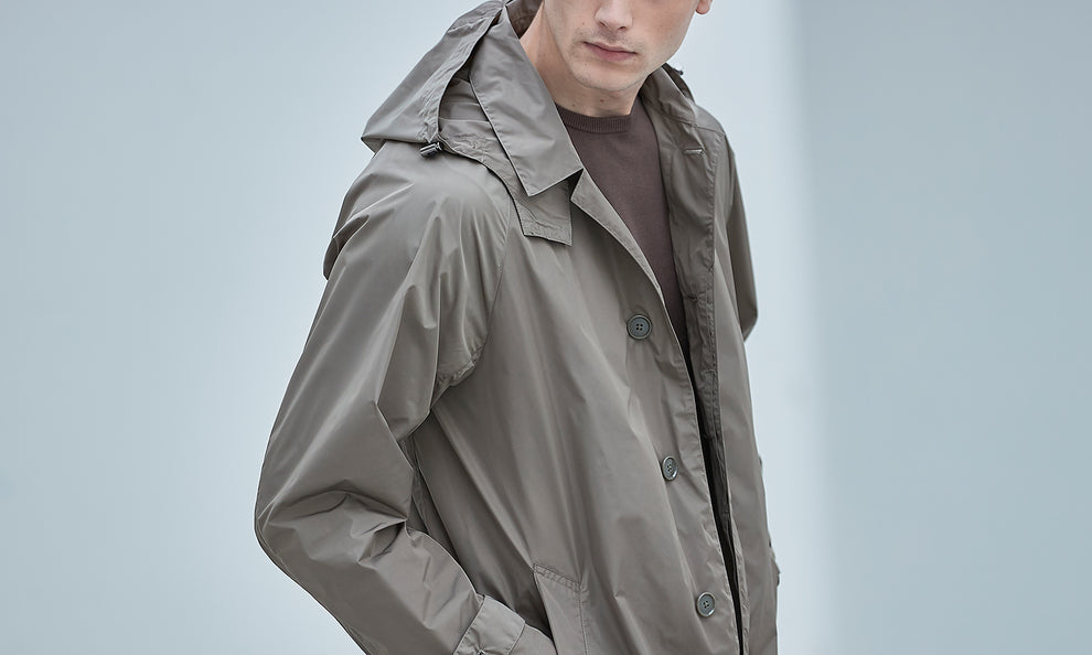 フードを取り外すことでビジネスで使いやすいバルカラーコートになります。