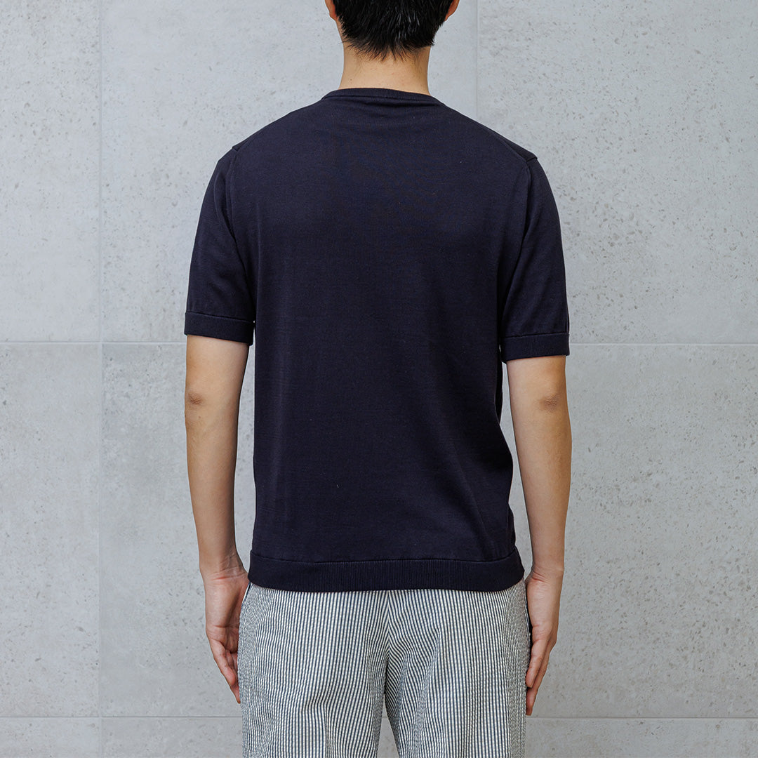 ブランドを代表する素材スビンプラチナム(ファーストピック)を使ったスビンプラチナムニットコレクション。その中でも春夏の人気アイテム、半袖ニットTシャツが約4年ぶりにリニューアルして登場です。 お客様からいただく声などを元にさらなる着心地の良さを追求。ついに新型ニットTシャツが完成いたしました。