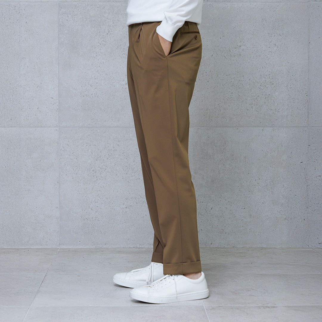 トラウザーテーラー五十嵐徹氏監修の「マットツイストイージートラウザー」に数量限定でキャメルが登場。人体の構造である骨格や筋肉にも考慮した五十嵐トラウザーズのエッセンスを取り入れて、既成でありながらテーラーメイドに近い穿き心地を実現。ベーシックなデザインとシルエット×機能素材=+CLOTHET流のスポーツカジュアルアイテムとなっております。