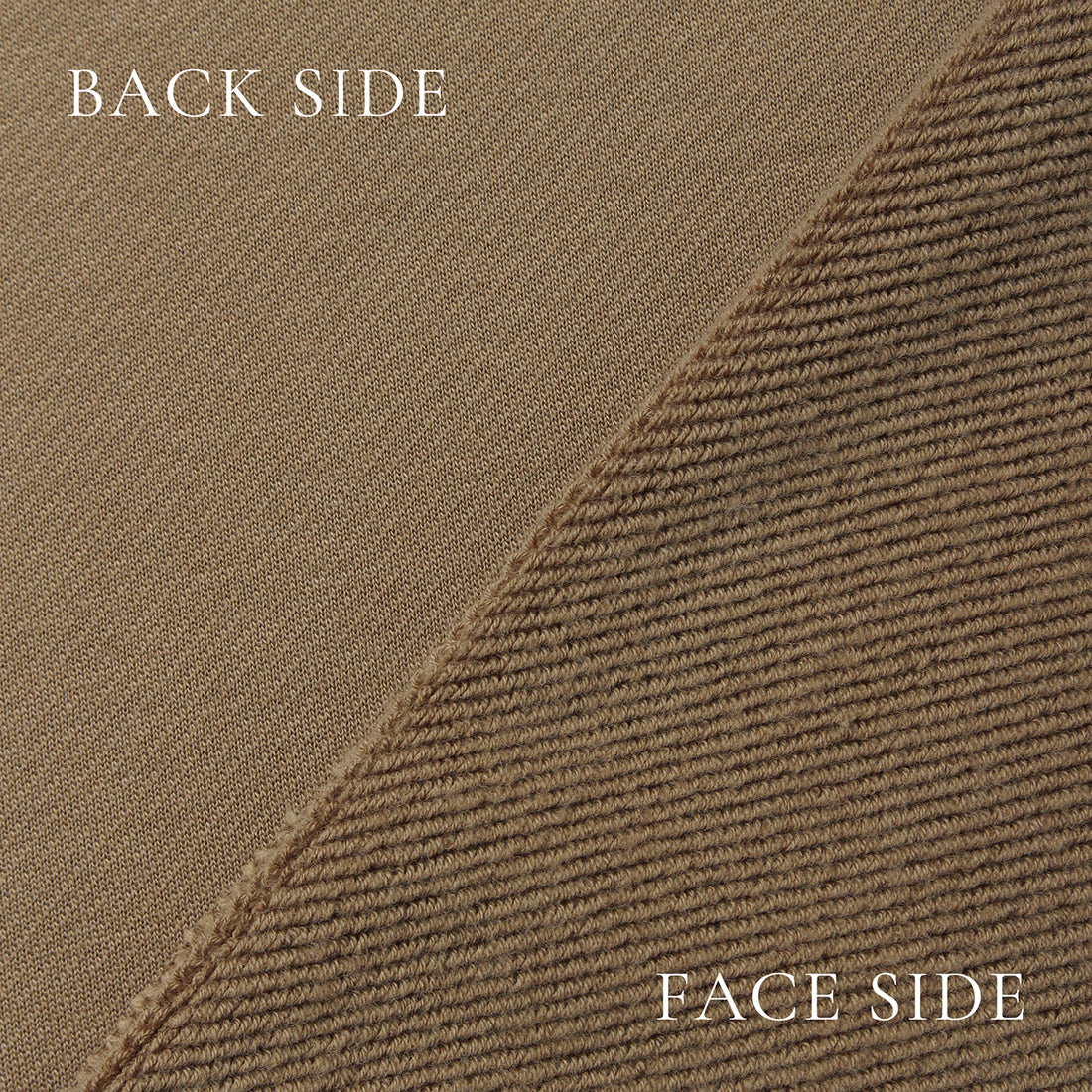 希少原料スビンプラチナムを表面、裏面ともに使用して完成した裏毛です。ハイゲージと呼ばれる32ゲージ裏毛編み機を採用、ソフトで膨らみが有り、かつ上品な艶、光沢の有る表情を生み出しています。また裏面を尾州産地で起毛することで、より生地の中に空気が含まれ柔らかさが増し、最高の肌触りを生み出しています。生地厚が増し、保温性を高める効果も発揮しています。