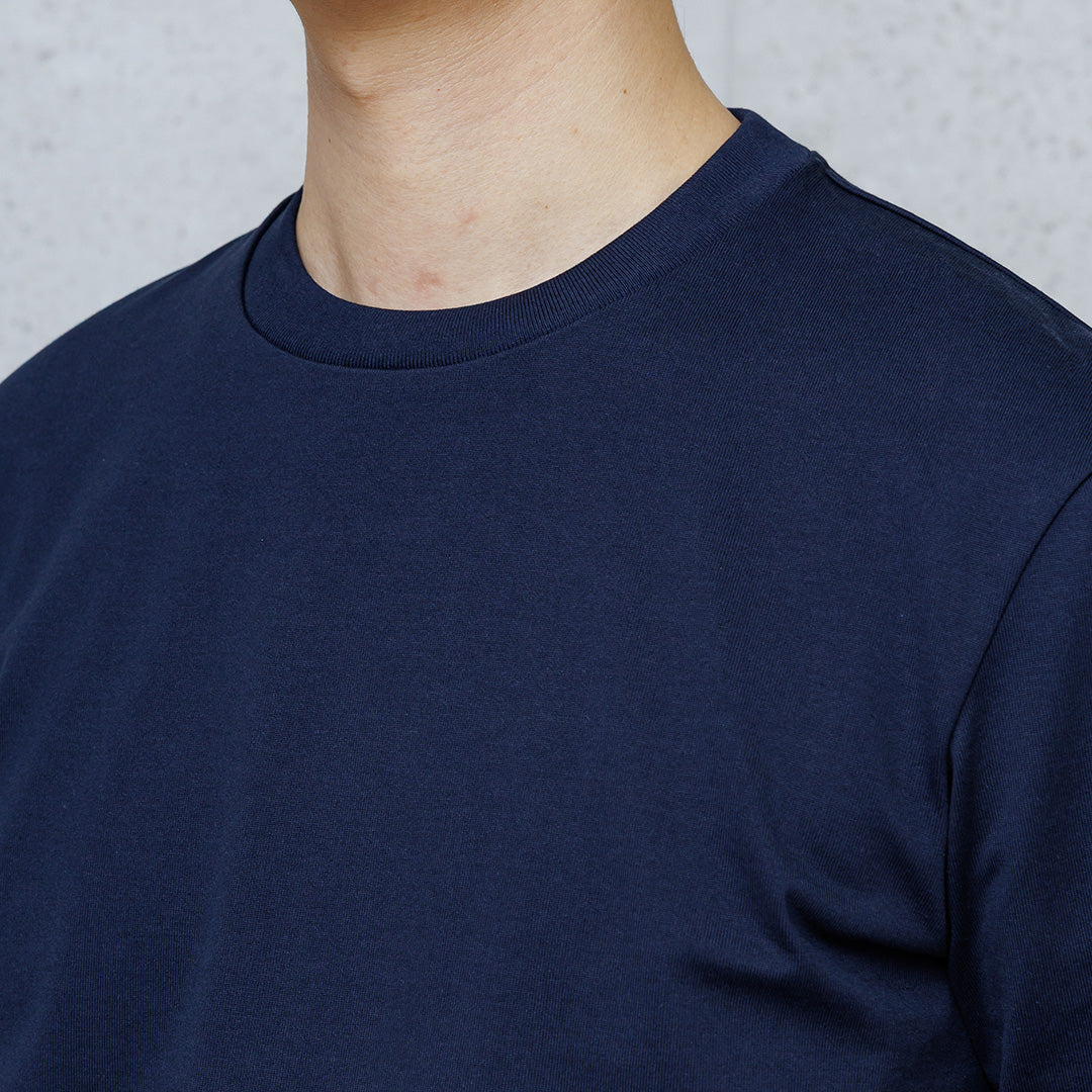 ブランドローンチ時から続く人気素材「ハイブリッドコットン天竺」を使ったTシャツがリニューアルして登場。テーラー監修のパターンメイキングにより、ジャケットの下で美しく映えるテーラーメイドのような仕立てと、それに程よくマッチする上質な質感で透けにくい天竺編みの生地。アップデートを繰り返し、常に進化しつづける定番商品です。