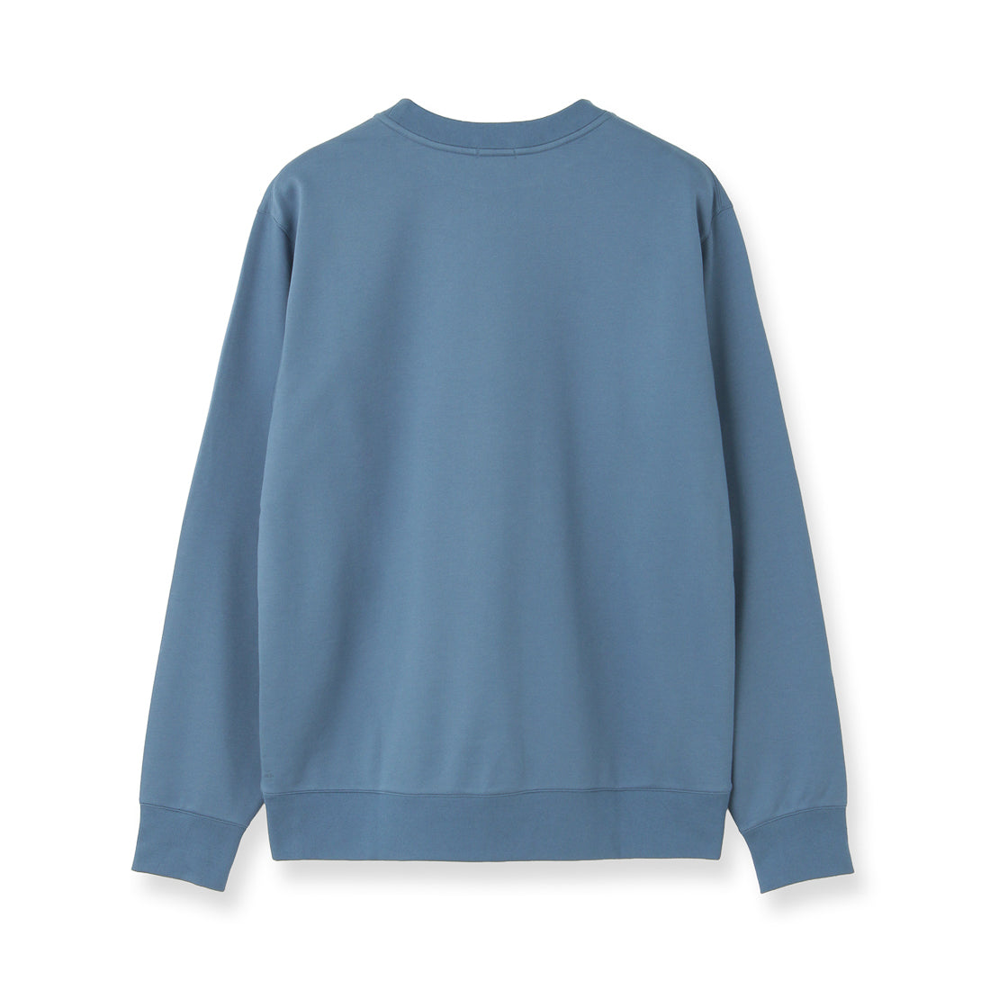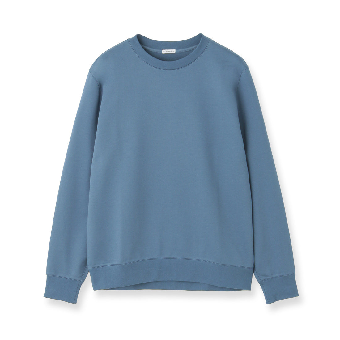 シーズンを問わずに活躍する人気素材「スビンプラチナムスムーステリー」を使ったスウェットシャツに人気のグラファイトブルーが登場しました。なめらかで上品な表面感と着心地の良さ、軽いアウターに最適な肉感で大変好評のアイテムです。